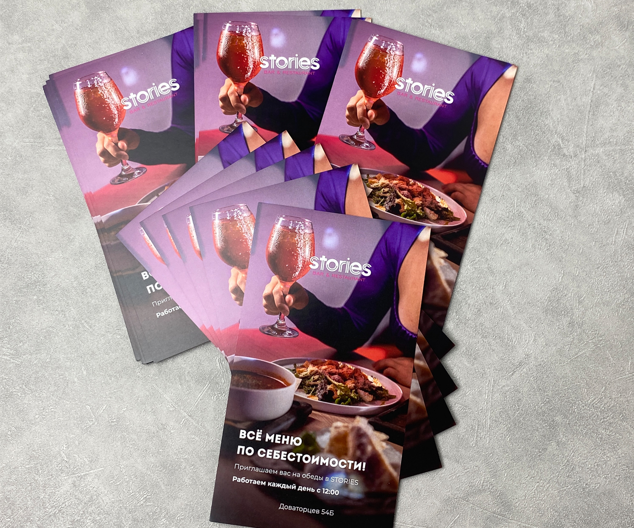 Флаер ЕВРО (95х205мм), мелованная бумага 130 г/м2