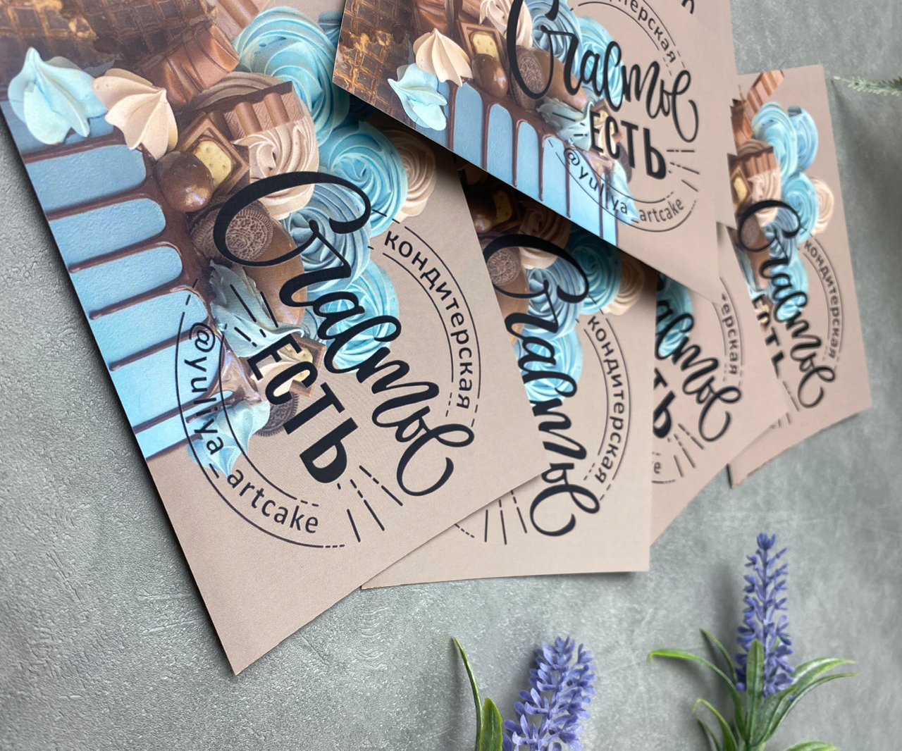 Визитки (90х50 мм), мелованная бумага 300 г/м2